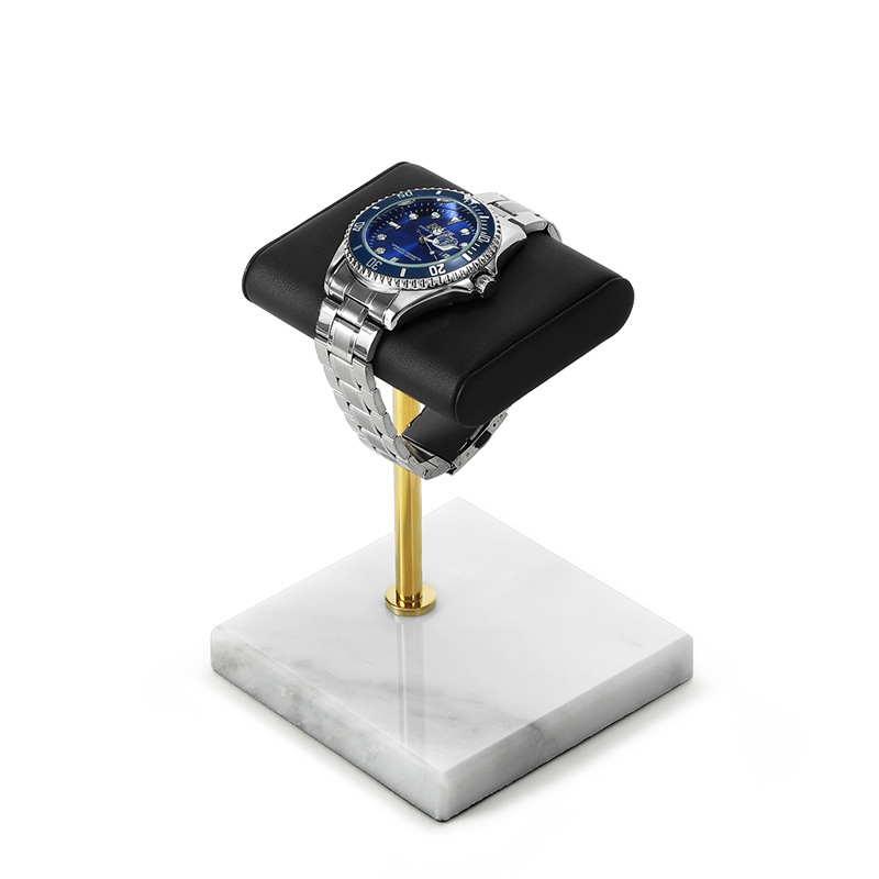 Handcrafted Leather, Marble base for a luxurious feel matched with a gold coating are perfect for your watch and retail settings.